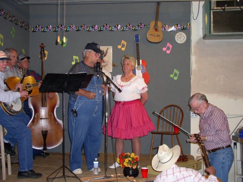Tommy Jordan introducing Perlie Reynolds of the Patrick Henry Travelers.